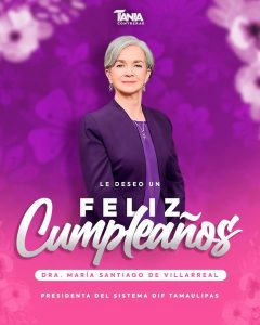 3.- Por cierto, la Presidenta del DIF Tamaulipas Dra. María de Villarreal, este sábado pasado recibió una lluvia de felicitaciones y muestras de afecto con motivo de su cumpleaños. Primero los recibió de su esposo, el gobernador Américo Villarreal Anaya, quien le dijo: Hoy celebramos tu vida y la alegría que nos regalas todos los días; eres la luz que ilumina a quienes tenemos la fortuna de estar cerca de ti. Gracias por tu cariño, tu energía y por todo el amor y la entrega que pones en cada cosa que haces para todas y todos. También los recibió de sus hijos.
