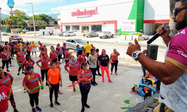 En el estacionamiento del inmueble del 27 Hidalgo, se dieron cita monitores deportivos del Ayuntamiento, en compañía de alumnos (as) exhibiendo rítmicas coreografías de alto impacto.