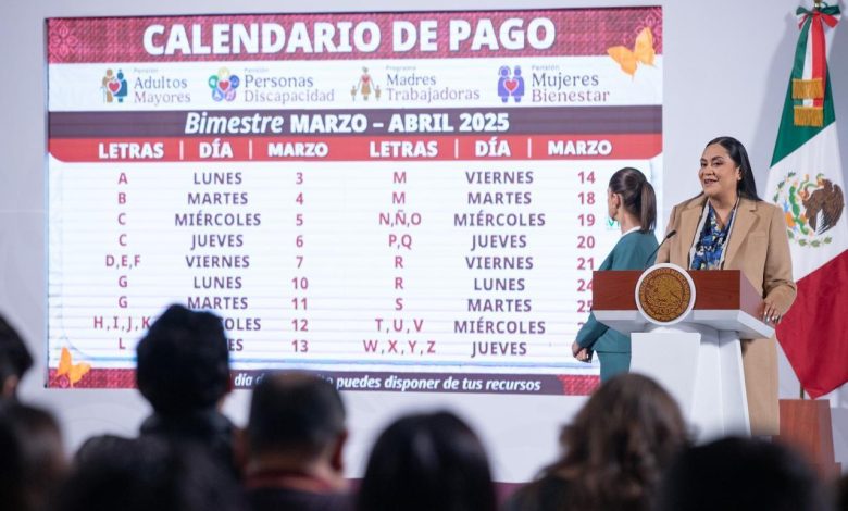 Al presentar el avance de la dispersión bancaria de las Pensiones y Programas, la secretaria Ariadna señaló que el depósito bancario se realiza de acuerdo con la letra del primer apellido del derechohabiente, por lo que mañana martes 18 de marzo corresponde a la letra M.