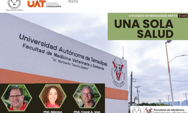 La Universidad Autónoma de Tamaulipas (UAT) a través de la Facultad de Medicina Veterinaria y Zootecnia, invita a la comunidad académica, investigadores, docentes, alumnos y profesionales de la salud al coloquio internacional “Una Sola Salud”, que se llevará a cabo el próximo miércoles 29 de enero, en punto de las 10 de la mañana.