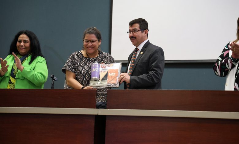 Lenia Batres fue recibida en el Campus Tampico por el rector de la UAT, Dámaso Anaya Alvarado, quien destacó la importancia que representa para la Universidad participar, desde la academia, en el análisis y discusión de temas fundamentales para el país.