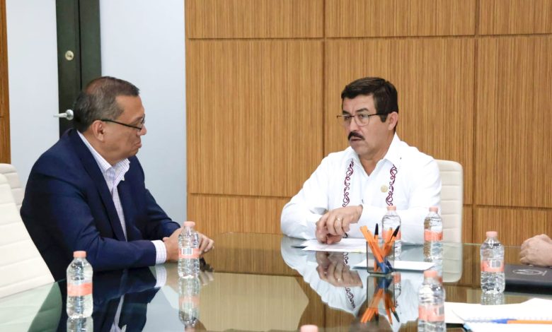 El rector de la Universidad Autónoma de Tamaulipas (UAT), Dámaso Anaya Alvarado, sostuvo una reunión con el delegado estatal del Instituto Mexicano del Seguro Social (IMSS), José Luis Aranza Aguilar, con el propósito de consolidar acciones conjuntas que fortalezcan la atención y el bienestar de la comunidad universitaria en la región de Nuevo Laredo.