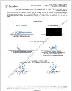 Por ejemplo, el Contrato DGYOP/080/2025, un procedimiento de solicitud de tres cotizaciones por correo electrónico para la adquisición de papelería y útiles de escritorio (recurso estatal), con un monto subtotal de $1,499,684.85 (más IVA), firmado por la secretaria Luisa Eugenia Manautou Galván, con intervención de Héctor Joel Villegas González y C.P. Antonio Montoya Ramírez.